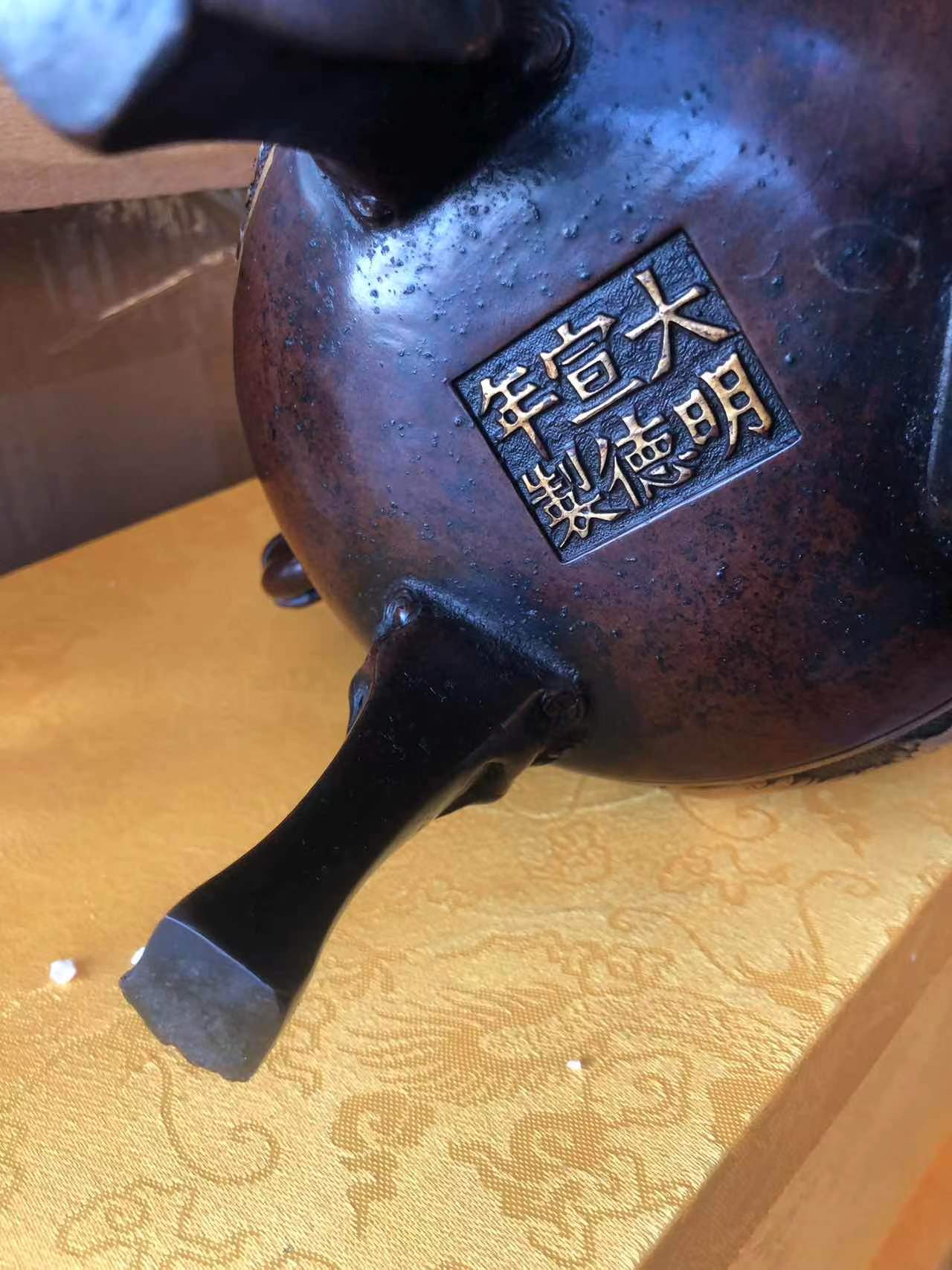 藏品名称:大明宣德年制三足双耳兽首熏香炉 参考价格:580000.00 藏品规格: 藏品款识: 藏品类别:1 热度值:0
