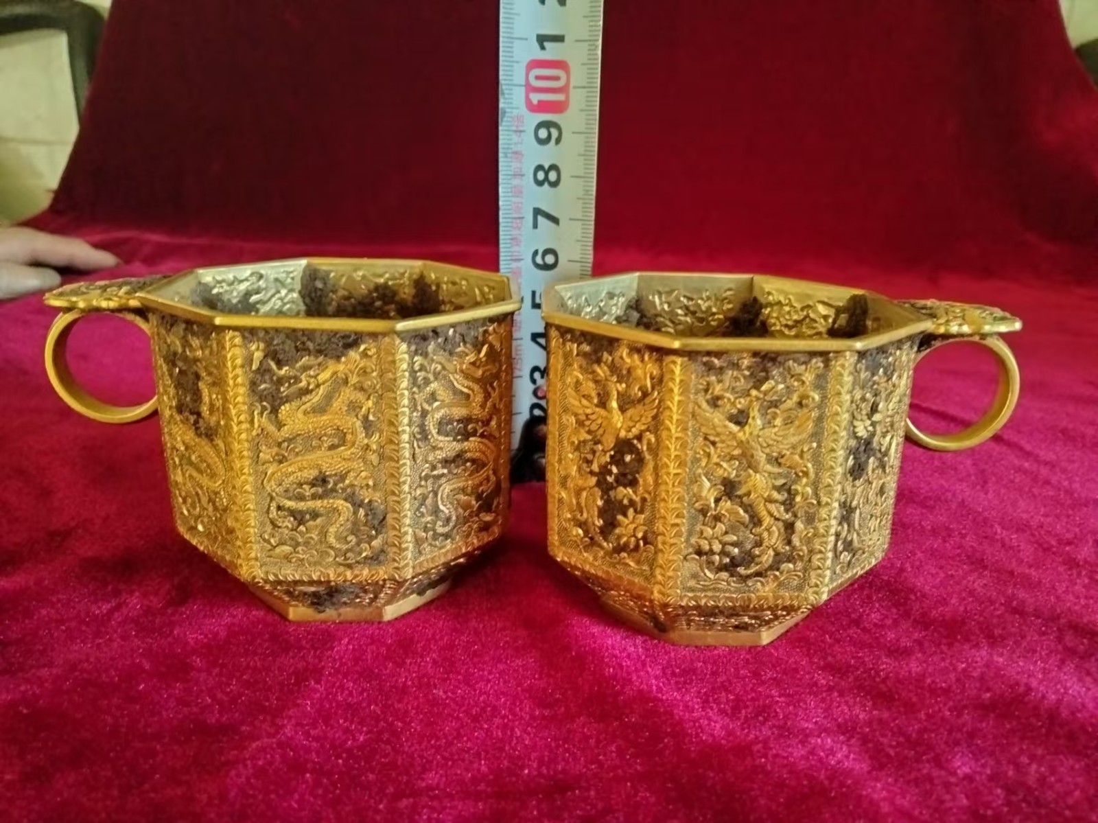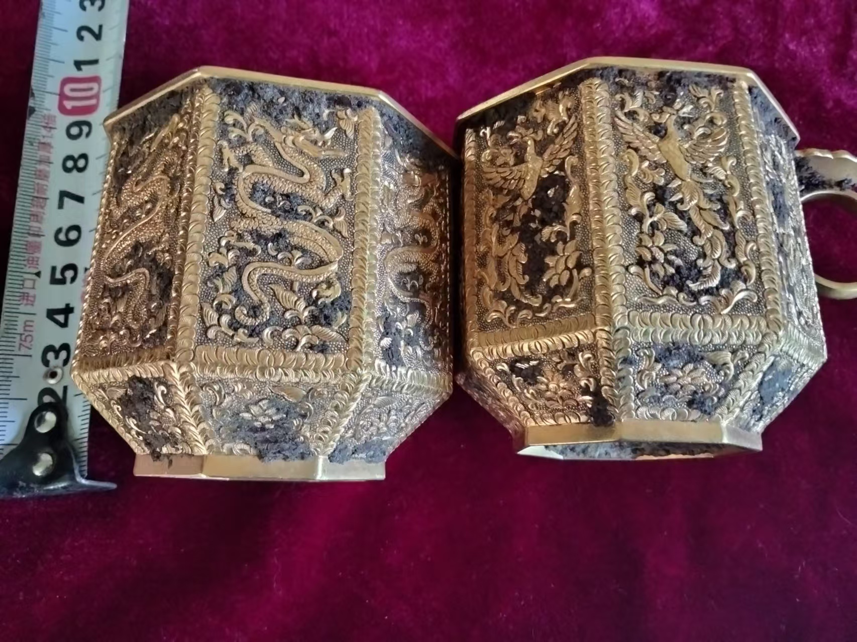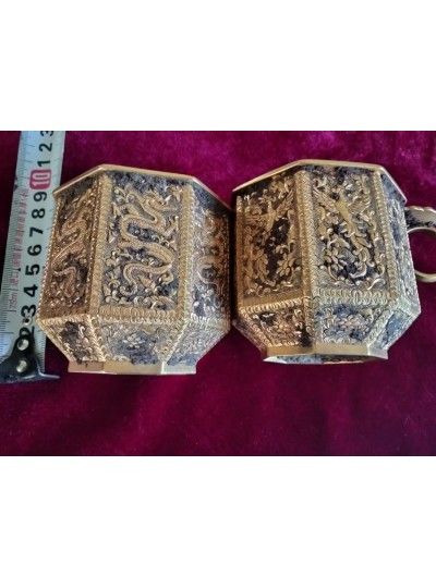 唐代银包金龙凤压手杯