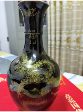 乾隆年制乌金釉描金云龙纹天球瓶