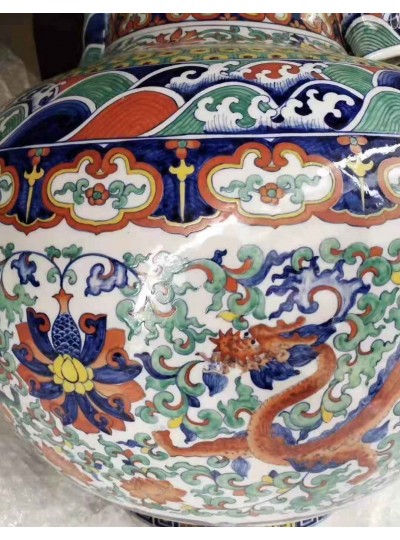 大明万历年制款海水龙纹斗彩赏瓶