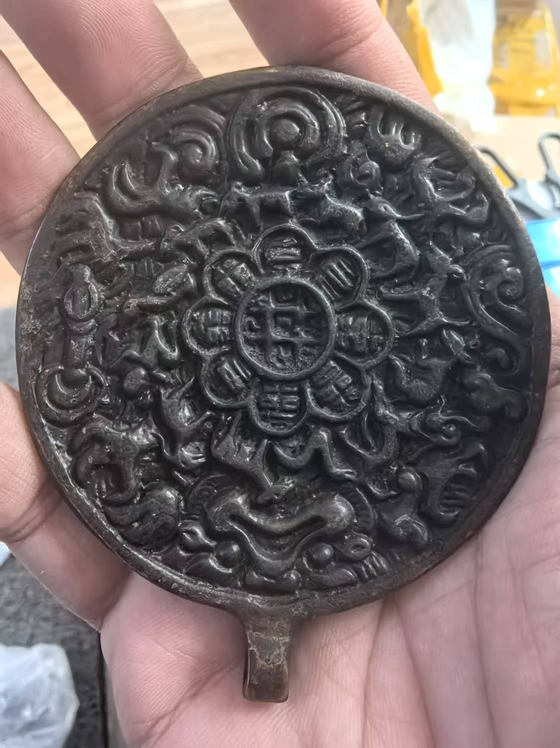 藏品名称:朝天吼九宫铜镜 参考价格:120000.00 藏品规格: 藏品款识: 藏品类别:1 热度值:0