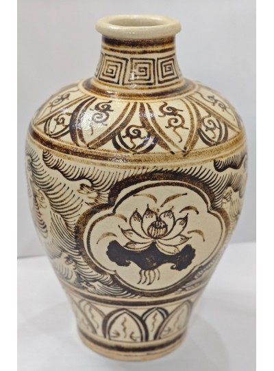 吉州窑彩绘开窗花卉纹梅瓶